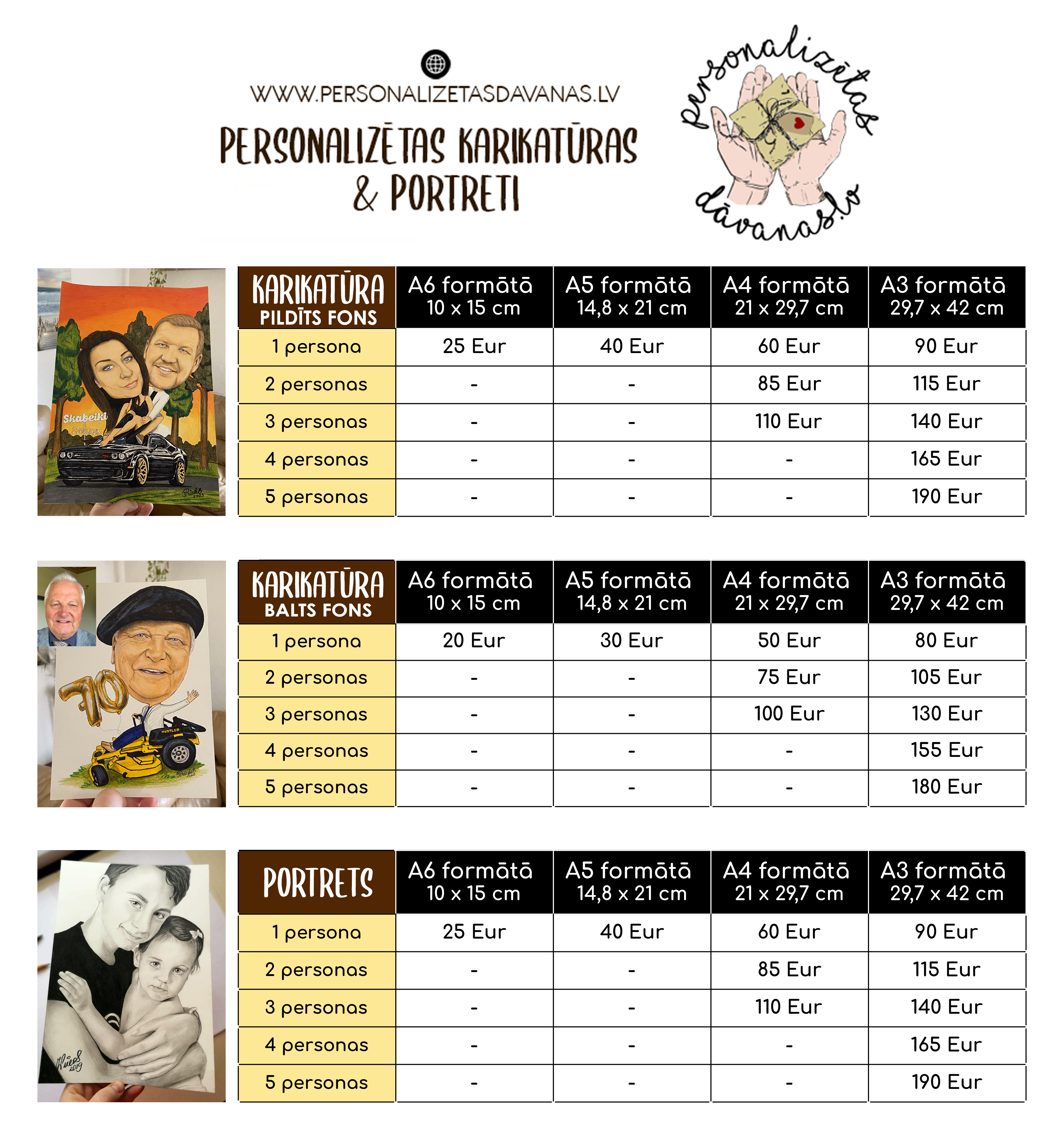 SOS pasūtījumos pieņemu tikai 1-2 cilvēku karikatūras A6, A5, A4 un A3 izmēros.